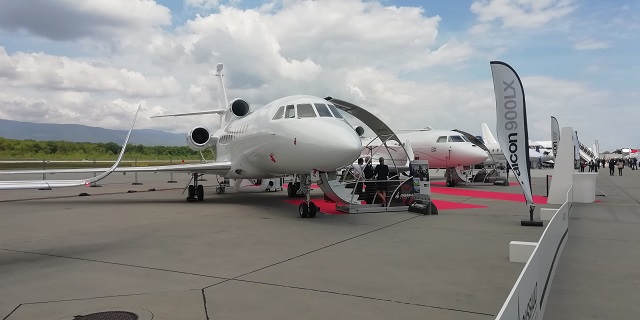 Dassault arbeitet seit gut einem Jahr an der Falcon 6X, an der EBACE 2019 stellte der französische Flugzeugbauer eine Kabinennachbildung des neusten Jets aus. Die zweistrahlige Falcon 6X soll ab 2022 am Markt verfügbar sein und kostet rund 50 Millionen US Dollar.